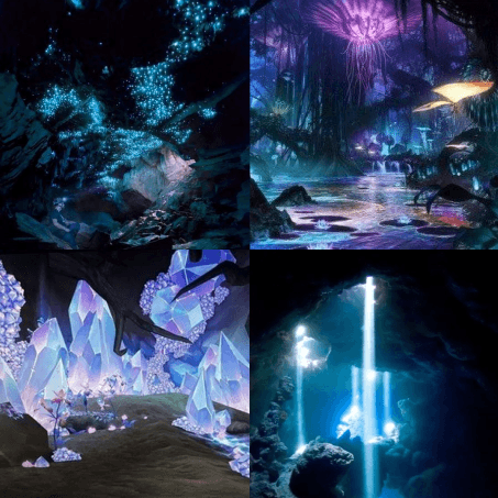 자연 풍경과 상반되는 분위기로 연출 거대한 폭포를 지나 들어온 동굴 속을 초현실적인 신비로운 공간으로 제작