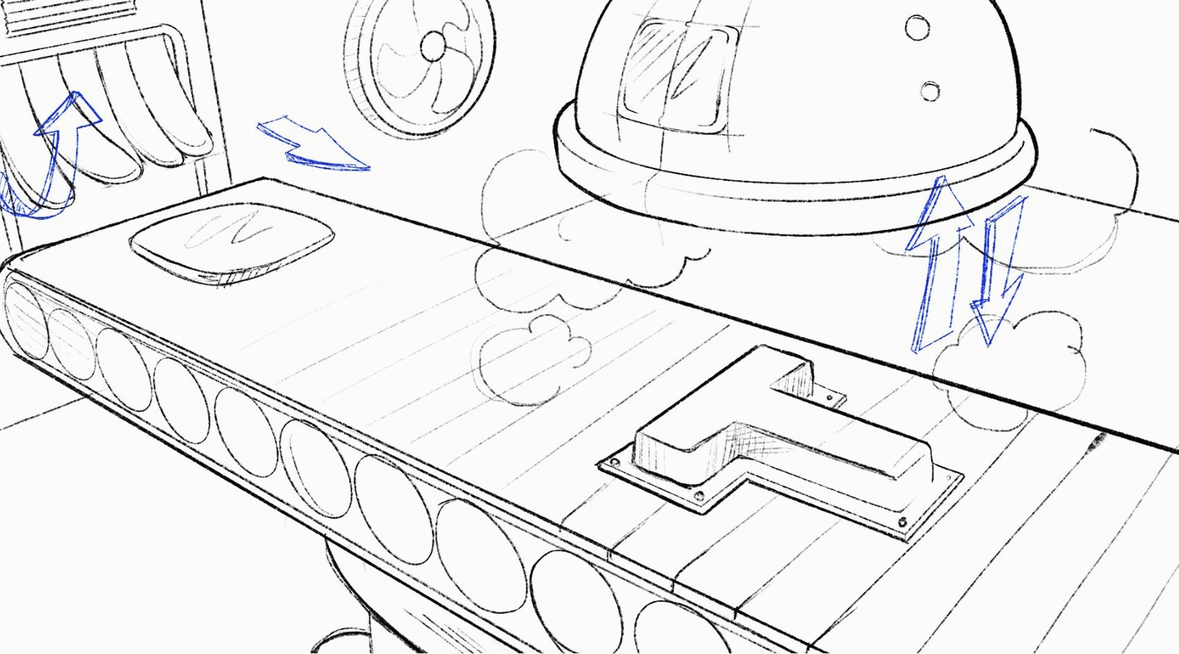 By capturing various scenes within the factory and representing each through the initials T, O, V,