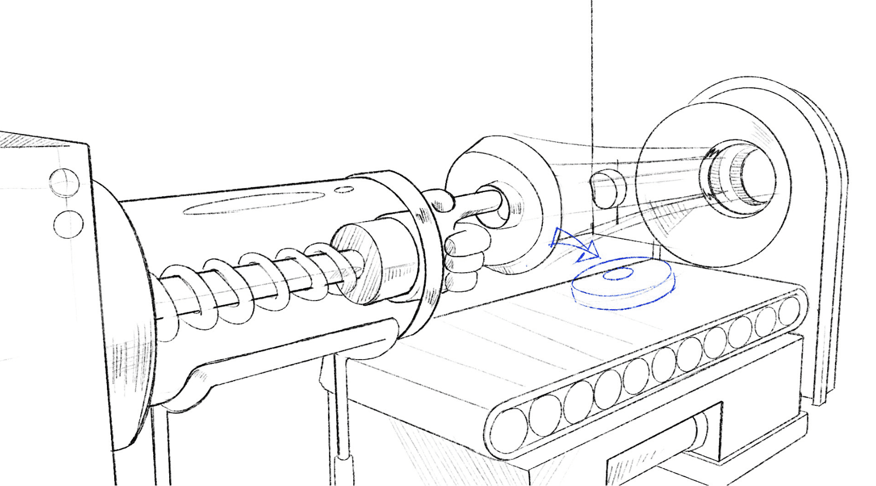공장 안의 다양한 상황들을 각각 T, O, V 이니셜로 찍어내고 전체적으로 하나되는 모습을 보여줌으로서
