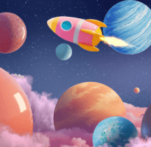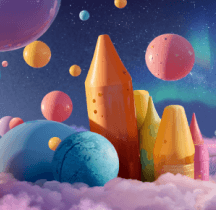 By aesthetically arranging giant crayons, toy castles, and pastel-hued planets, I curated a celestial playground that sparks boundless imagination in children while evoking warm nostalgia in adults.