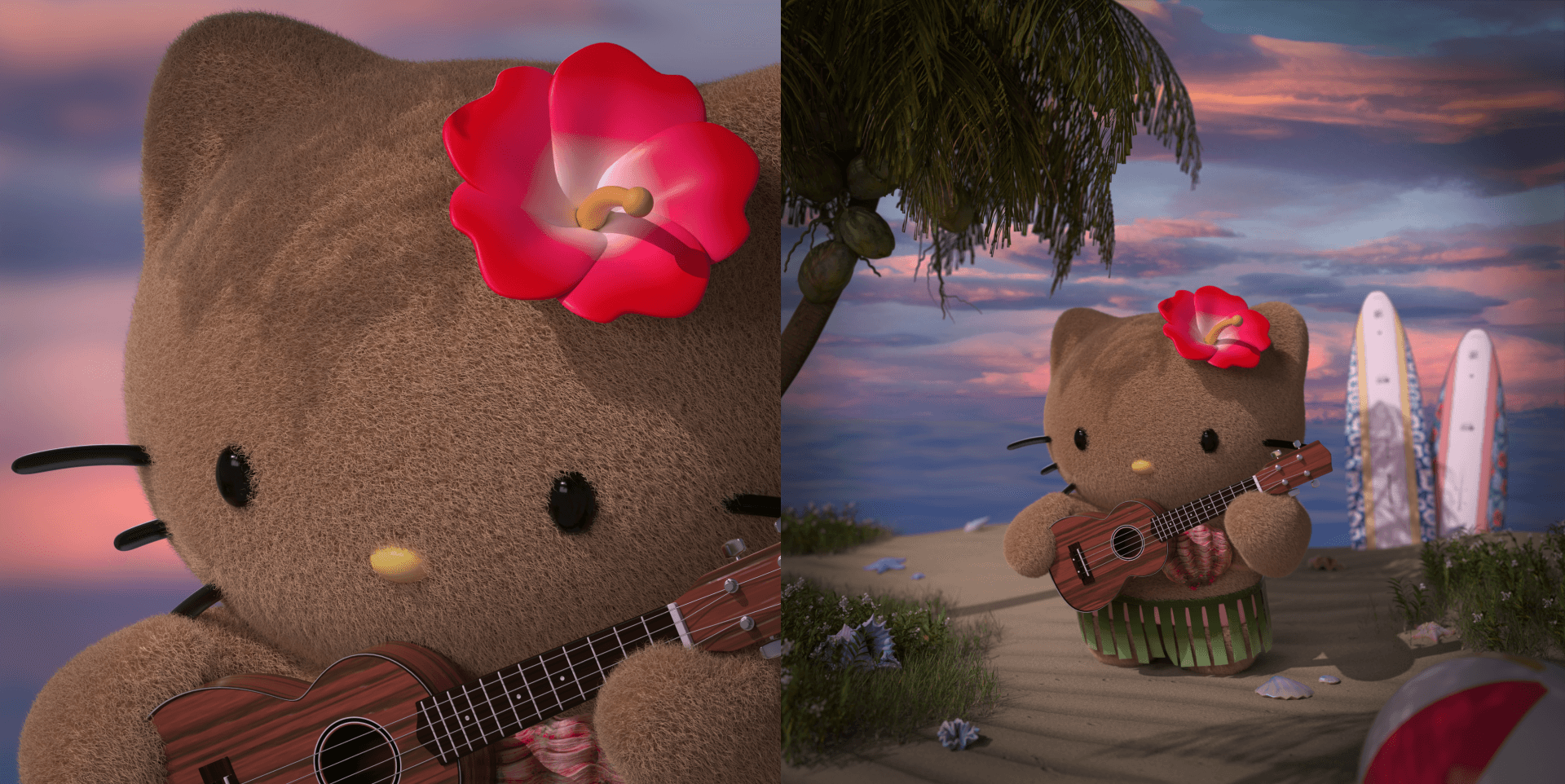 I designed a version of Hello Kitty inspired by Guam, where she's enjoying a relaxing vacation while playing the guitar.