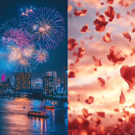 and finally to the dazzling world of nighttime fireworks.