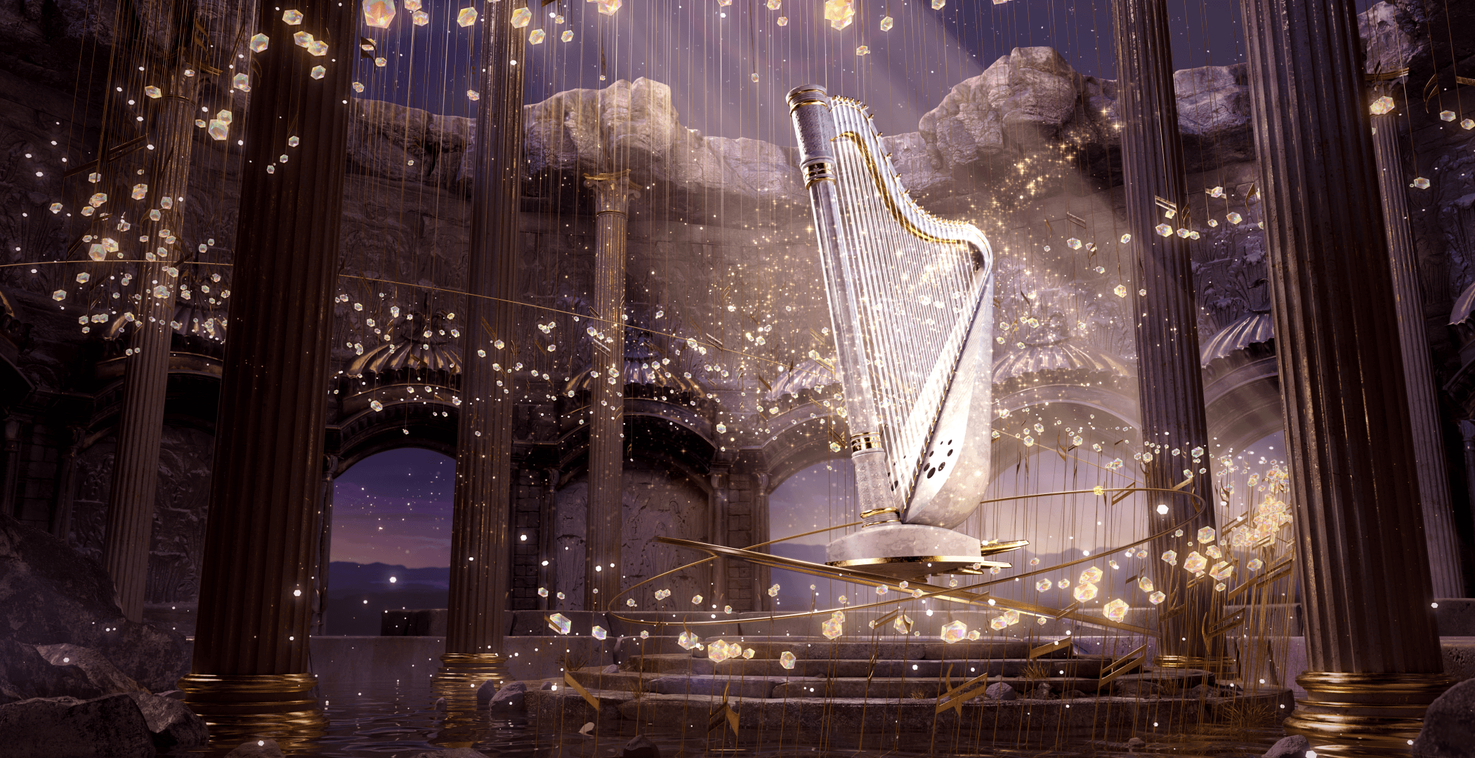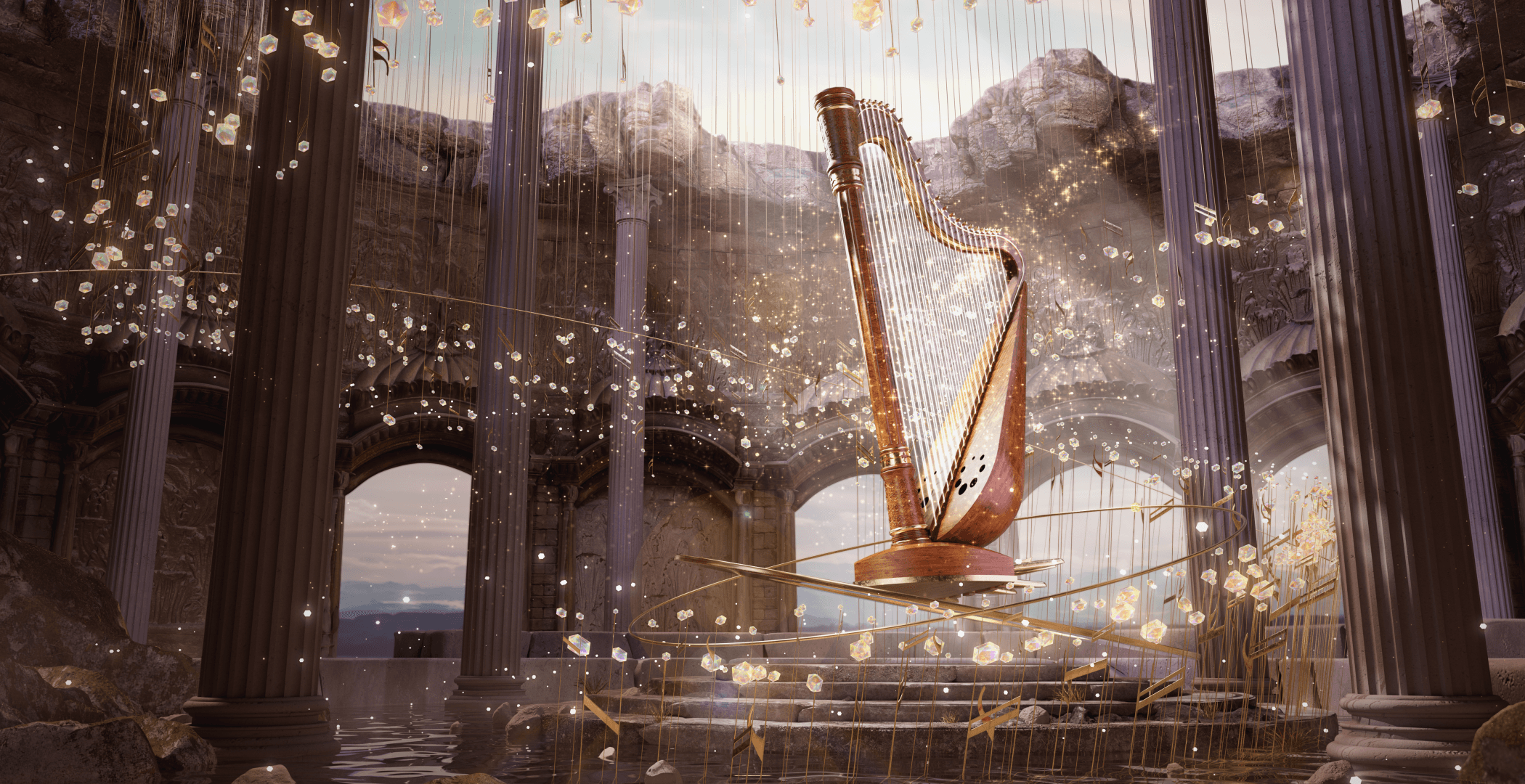 미디어 아트로 재해석해 리라와 음표를 상실 속의 희망의 순환을 표현,